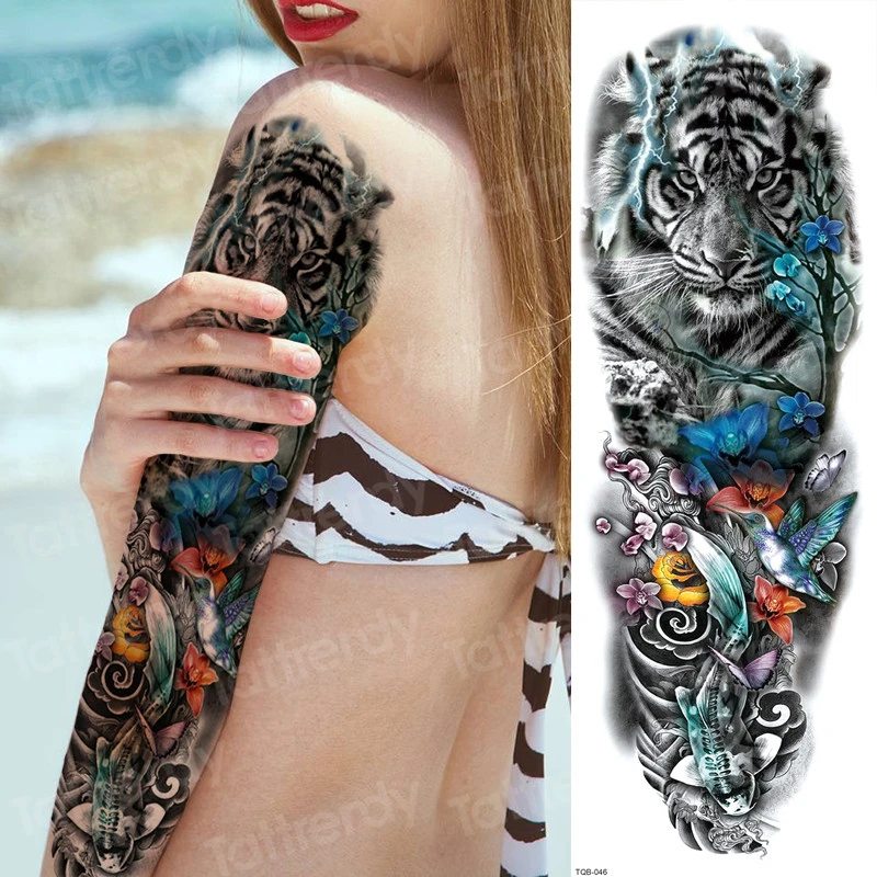 Stiker tato lengan penuh untuk pria, bahu bunga besar lengan tato palsu untuk . Tato bunga mawar di lengan seorang wanita | gambar tato keren.