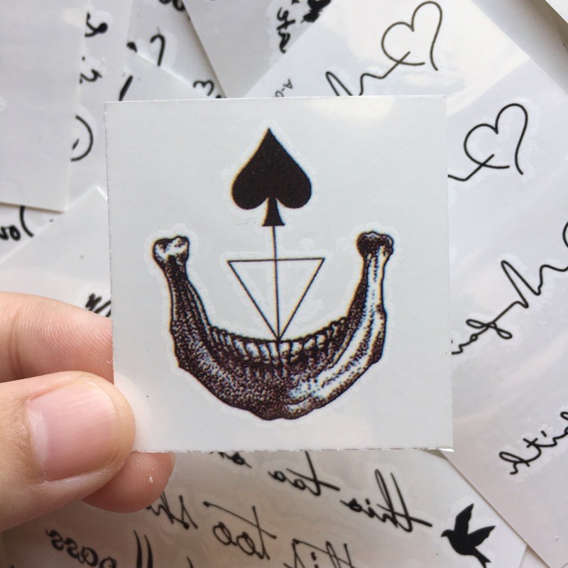 Desain tato tulisan gambar tato simple di tangan; Euchre adalah varian permainan kartu remi yang bertanggung jawab memunculkan joker pertama kali.